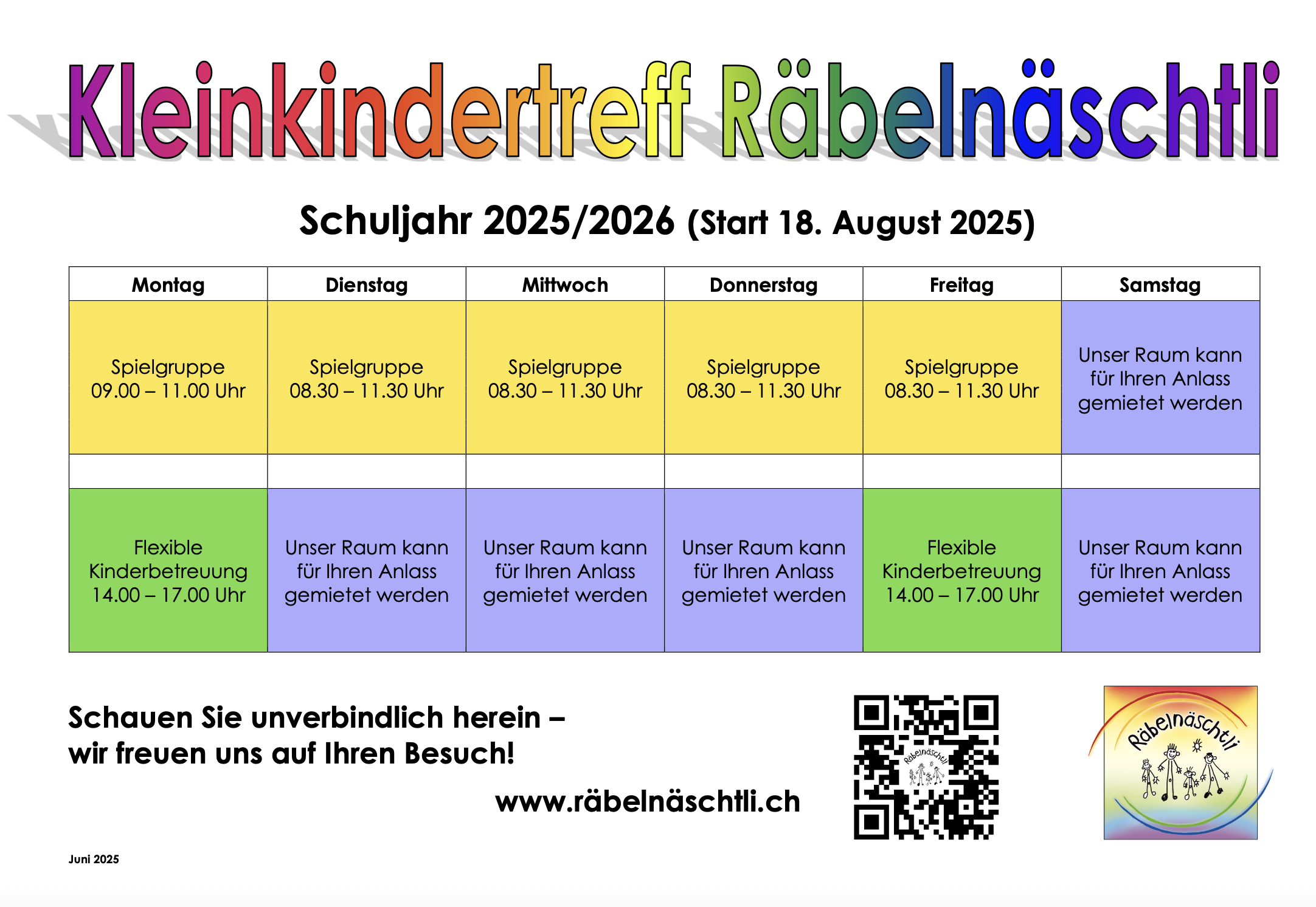 Noch wenige Plätze für das Spielgruppenjahr 2025/2026 mit Start ab 18. August 2025 frei.